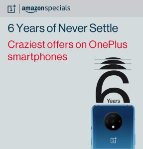 OnePlus is celebrating its sixth global anniversary in India and is offering attractive discounts on its OnePlus 7 series of smartphones on Amazon India. The discounts are also available on OnePlus online stores as well. The recently launched OnePlus 7T is also a part of the phones that are selling at a discount of up to Rs 10,000.