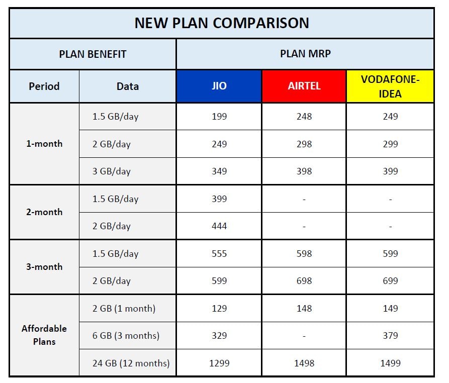 Jio VS Airtel, Voda-Idea: Know whose plan is better after increased rate